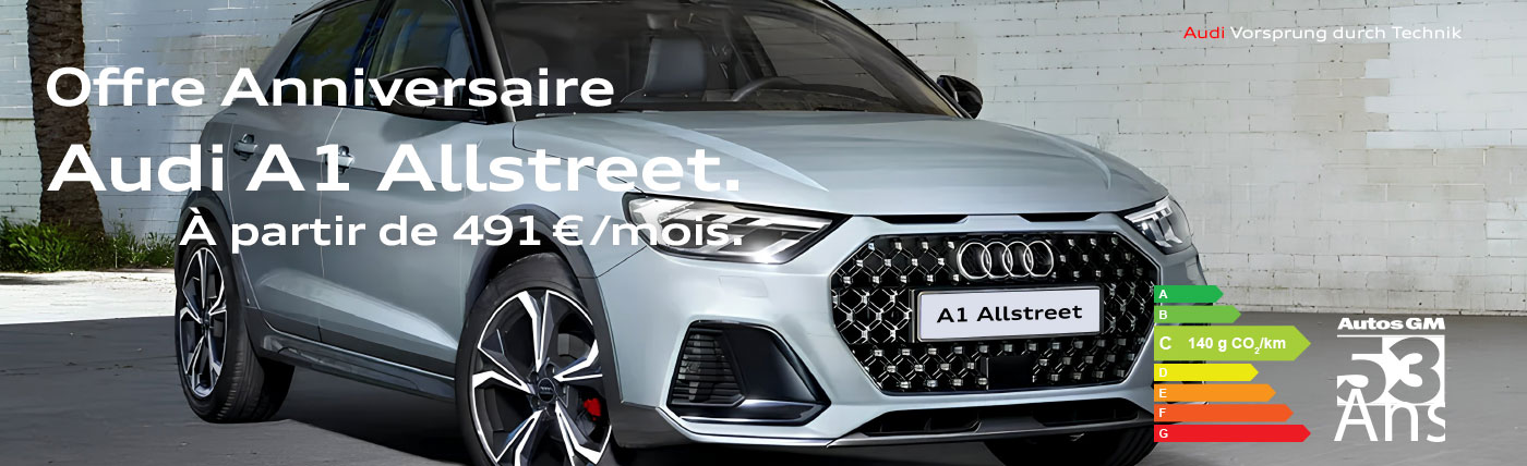 À l’occasion de ses 53 ans, AUTOSGM vous propose une offre exceptionnelle sur l’Audi A1 Allstreet. Offre valable du 25 août au 30 septembre 2025.